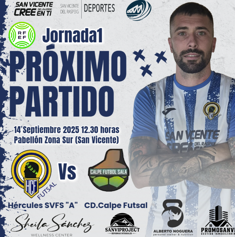 El Hércules San Vicente inicia su andadura en Tercera División este domingo (12:30h) en el Pabellón Zona Sur frente al C.D. Calpe Futsal. Ilusión, plantilla renovada y apoyo de la afición para un estreno exigente.