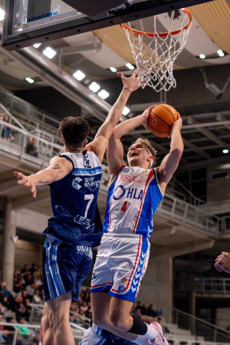 En un momento clave, Larsen asumió la responsabilidad con cinco puntos consecutivos que devolvieron la ventaja al HLA. Al descanso se llegó con un ajustado 45-41, reflejo de un partido en el que los alicantinos eran superiores cuando elevaban su intensidad, pero sufrían en los momentos de desconexión.