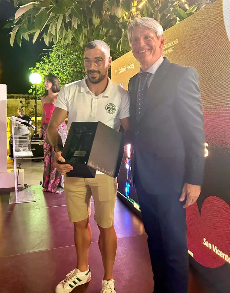 PREMIO JUAN ESCARRE: PEDRO ARQUES MADRIGAL. Por su gran temporada 24-25 con el 1º equipo de DHBM del CA San Vicente desde su posición como delantero, generando peligro cada vez que toca la bola y haciendo jugar al equipo. 21 goles en 17 partidos de DHBM